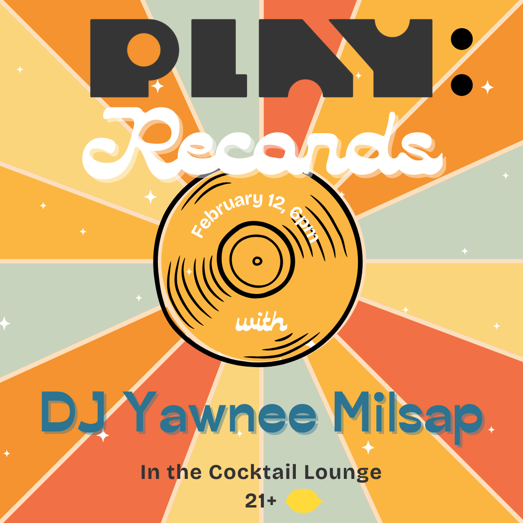 PLAY: Records is our weekly all vinyl night in the PLAY Cocktail Lounge. Each week we invite a different DJ to show off their collection. DJ Yawnee Milsap has performed at PLAY many times always bringing a different sound to his genre curated sets.