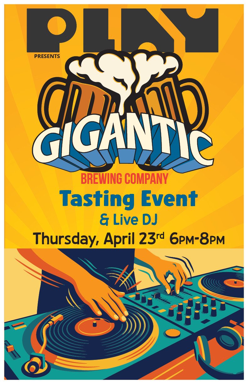 Join us Thursday, April 23rd for a special event. THE Ben Love, founder of Gigantic Brewing, is playing a vinyl records set at PLAY! Find these GIGANTIC Beers on tap: