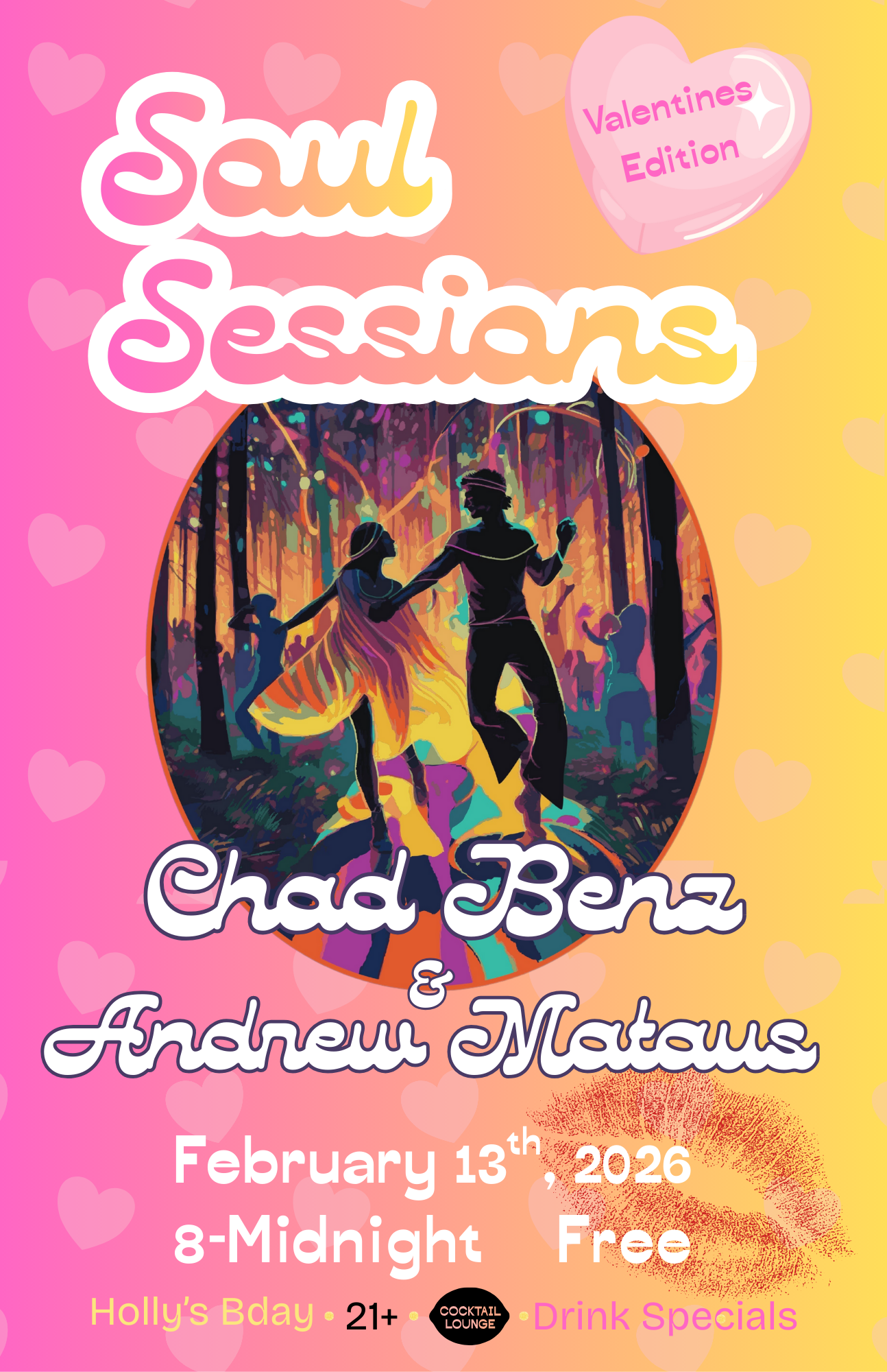 Soul Sessions is a biweekly electronic music night in the PLAY Cocktail Lounge. February 13th catch Andrew Mataus and Chad Benz on the decks for a special Valentines Edition. ALL HOUSE MUSIC!